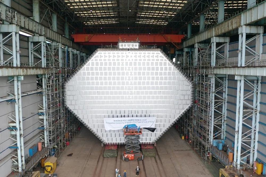 2021年5月,江南造船建成全球首个VLEC B型舱,美国船级社颁发证书。